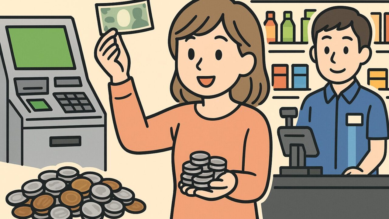 たとえば、セルフレジやATMを使って入金・チャージを行えば、小銭をそのまま電子マネーや口座残高に変換できます。そこからお札で引き出す、またはチャージした電子マネーで支払うことで、お札を使うのと同じ感覚でスムーズに支払いができます。
