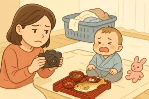 お食い初めの写真は「一生に一度」の記念。あとから見返したときに「もっと可愛く撮ればよかった…」と感じる人が意外と多いんです。私も長男のお食い初めで、表情や角度に気を配れず後悔しました。