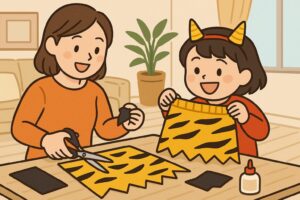 節分の衣装作りは、ただの工作ではなく、子どもの心に残る「家族のイベント」そのものです。材料が揃っていなくても、フェルトやビニール袋、古いTシャツなど身近なものを使えば十分に素敵な衣装が完成します。大切なのは見た目の完璧さではなく、「自分のために作ってくれた」というぬくもりが伝わることです。