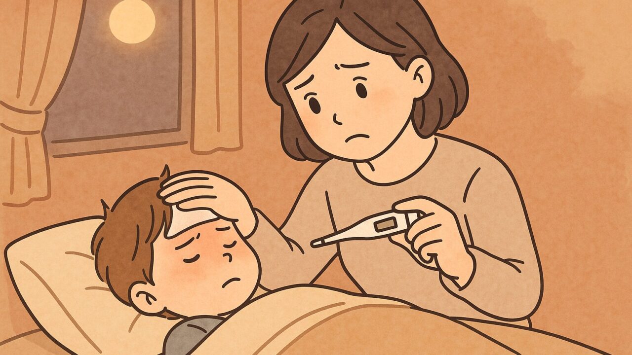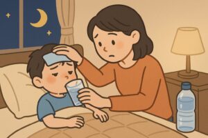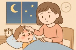 夜の発熱は、子どもも親も眠れずにつらい時間になります。まずは慌てず、水分・睡眠・室温の「3本柱」を丁寧に整えることから始めると、体のしんどさがぐっと軽くなります。