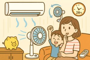 特に子どもや高齢者がいる家庭では、無理に温度を上げるよりも“効率よく冷やす”ことを意識するほうが安全で経済的です。