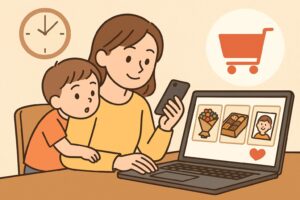 ネット注文で選べるギフトは、忙しい家庭の強い味方。スイーツ、お花、日用品、文具など、祖父母が喜ぶアイテムがほぼオンラインで揃います。