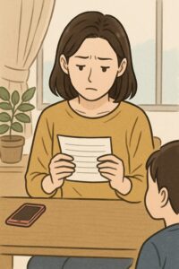 最近は学校アプリやメールを使って連絡する学校も増えています。こちらも短文でスッと送れるのがメリット。必要以上に「申し訳ありません」を重ねてしまうと、かえって重たい印象になることがあるので、淡々と事実だけ書くのがポイントです。