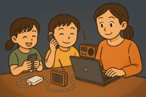 停電中に情報源が途絶えるのは想像以上に不安になるもの。スマホに頼り切らず、電力不要の“バックアップ情報源”を持っておくことが家族の安全につながります。