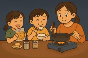 停電時は不安が大きいですが、家にあるものを最大限に活かすだけで食事の心配はぐっと減ります。少しの工夫で、家族の安心につながる時間が作れます。