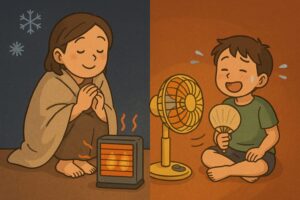 家電が使えない状況でも、家にあるものと少しの工夫で体の負担はぐっと軽くなります。停電が長引くほど気力も奪われがちなので、身体を守る“温度対策”はとても大切です。