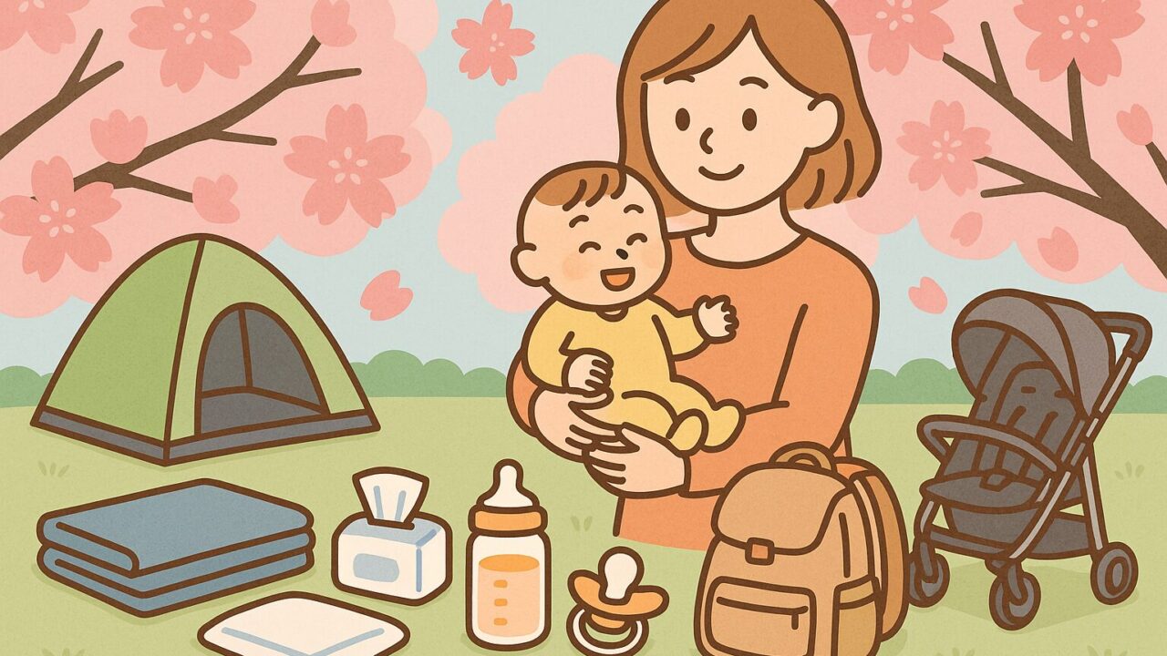 でも、実際に行ってみて感じたのは、“持ち物をシンプルにしつつ、赤ちゃんの快適さを守る工夫”さえ押さえれば、想像以上にゆったり過ごせるということ。この記事では、子連れ花見に必須の持ち物から、あると便利なアイテム、赤ちゃん連れ特有の注意点までまとめています。家族みんなで安心して春の景色を楽しめますように。