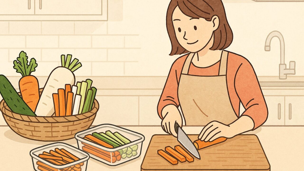 この記事では、私が日常的に実践している“パリッとおいしい野菜スティックの下ごしらえ法”を、家庭でできるやさしい手順でまとめました。忙しい家庭でも続けやすい方法なので、今日の準備からすぐ使えます。
