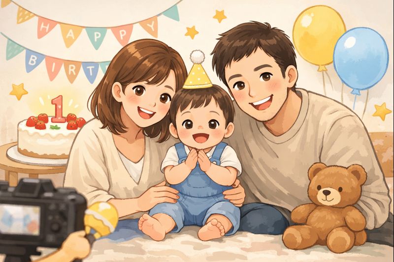 1歳の誕生日は、一度きりの大切な節目です。今日撮った写真は、数年後、きっと「こんなに小さかったんだね」と家族で笑い合える宝物になります。ぜひ、あなたの家族らしさが伝わる一枚を、肩の力を抜いて残してみてください。その一歩が、あとから何度も見返したくなる思い出につながります。