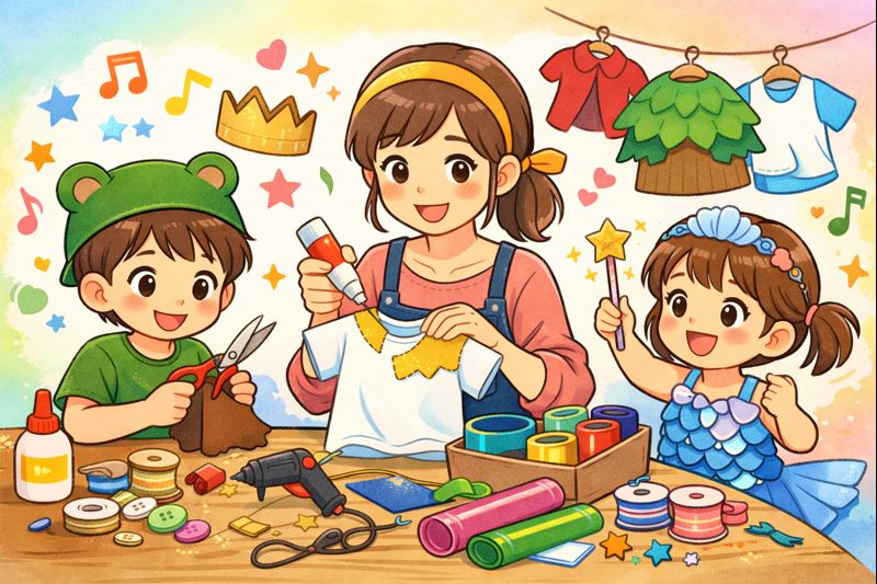 学芸会の衣装作りって、「やってあげたい気持ち」と「時間もお金も限られている現実」の間で、正直ちょっとプレッシャーがありますよね。私も毎回、プリントを見ては「布買う?家にあるもので何とかする?」と悩み、子どもと相談しながら試行錯誤してきました。