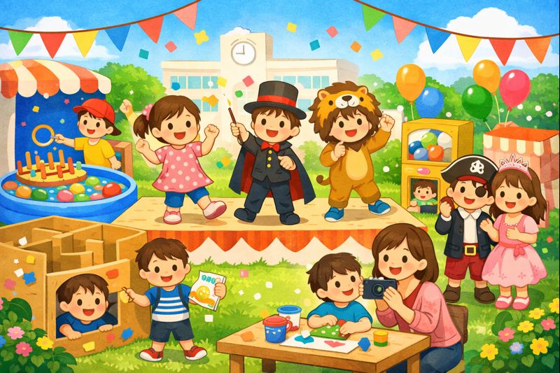 文化祭の出し物は、立派で完璧なものを用意しなくても大丈夫です。体験できる遊び、短時間で楽しめるゲーム、思い出に残る発表や写真コーナー。どれも「子どもが笑顔で楽しめるか」を少し意識するだけで、自然と素敵な出し物になります。準備する側としては不安もあるけれど、当日、子どもたちが楽しそうに参加している姿を見ると、「やってよかったな」と心から思える瞬間が必ずあります。