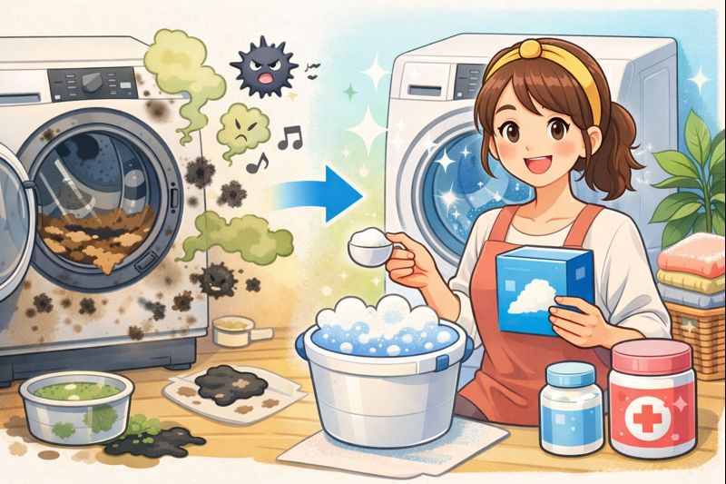 「洗濯機ってちゃんと洗ってくれているはずなのに、なんだか最近、服がスッキリしない…」「ふわっと嫌なニオイが残る…」。そんなモヤモヤを感じたとき、私もまず調べたのが「洗濯機 掃除 重曹」でした。手軽で家に常備していることも多いから、できれば重曹で済ませたいと思う人は多いですよね。でも実際に使ってみると、”万能”というわけではないことも見えてきました。