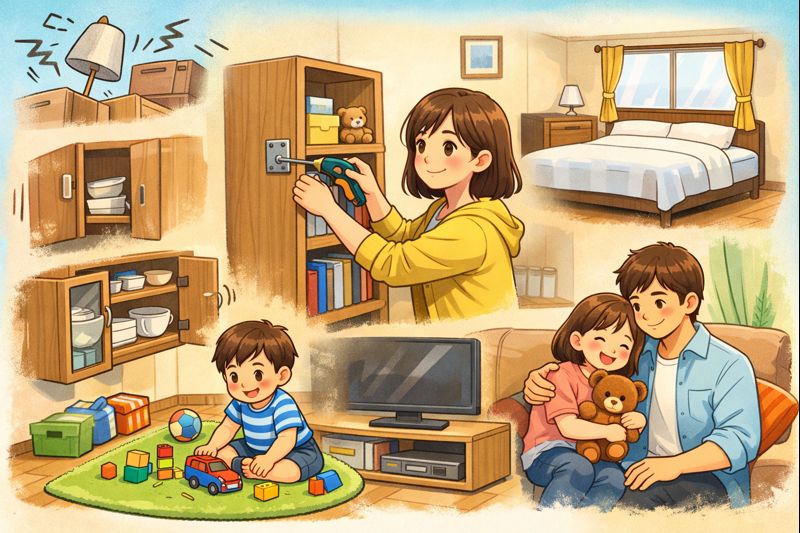 地震のニュースを見るたびに、「うちの家、大丈夫かな」と不安になることはありませんか。私も子どもが生まれてから、同じように感じるようになりました。家具が倒れたらどうしよう、寝ているときに揺れたら守れるだろうか。そう思いながらも、毎日バタバタで、何から手をつければいいのか分からないまま時間だけが過ぎていました。