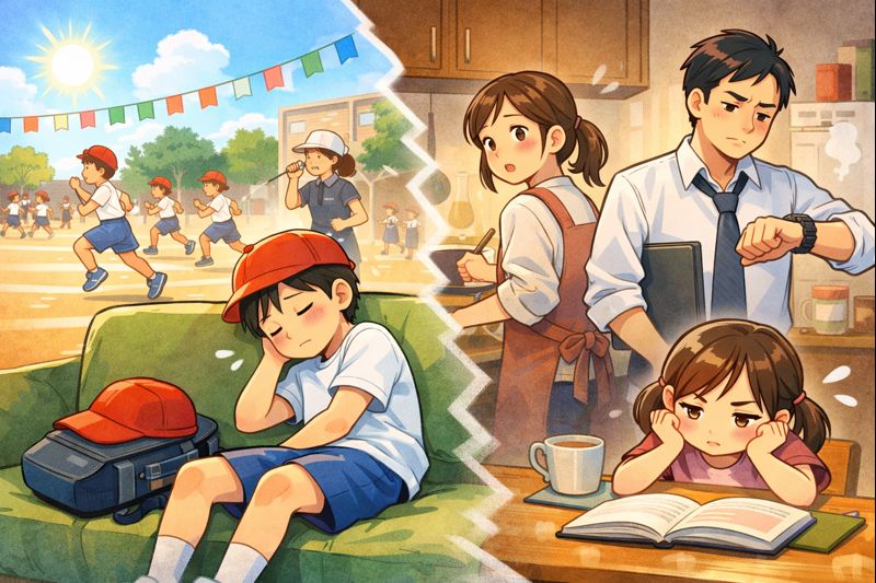 この記事では、運動会の練習が家庭生活にどんな影響を与えたのか、私自身の体験をもとに振り返りながら、「無理をしすぎないための考え方」や「家庭でできた小さな工夫」をまとめています。
