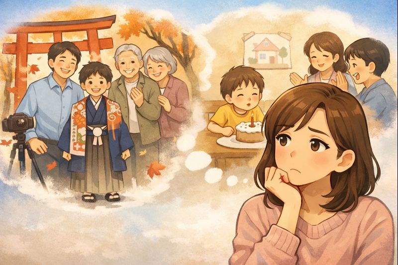 私の中では、着物や神社、きれいに残した写真が七五三の中心だったからです。でも、子どもにとって印象に残っていたのは、帰り道に寄ったお店で、家族みんなで笑いながら過ごした時間でした。