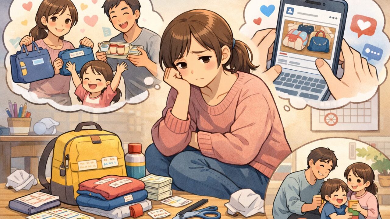最初は、必要な情報を集めるためにSNSを見ていました。「これは便利そう」「こういう工夫もあるんだ」と、参考になることもたくさんあります。でも気づけば、画面に並ぶのはきれいに揃えられた持ち物や、余裕そうな他の家庭の様子ばかり。