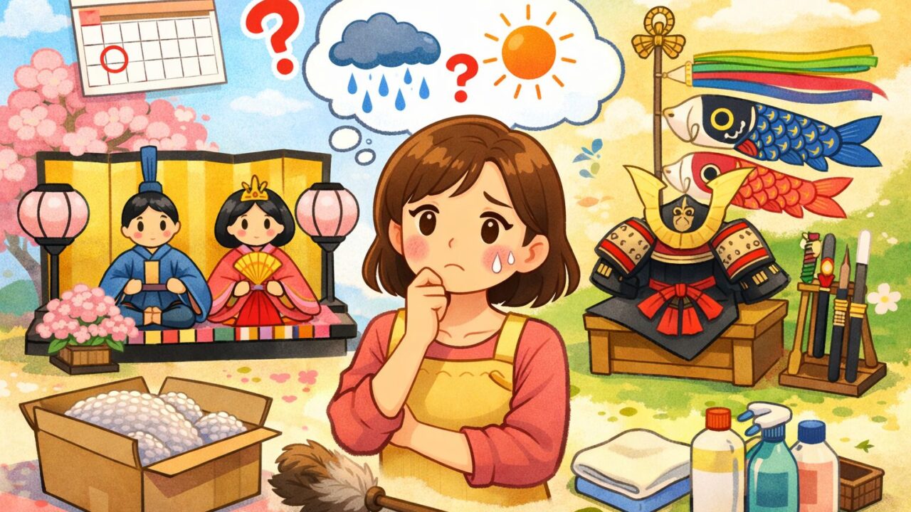 この記事では、節句飾りをしまう目安の期間や、遅れたらどうなるのか、そして迷ったときの考え方を、私の体験も交えながら整理していきます。