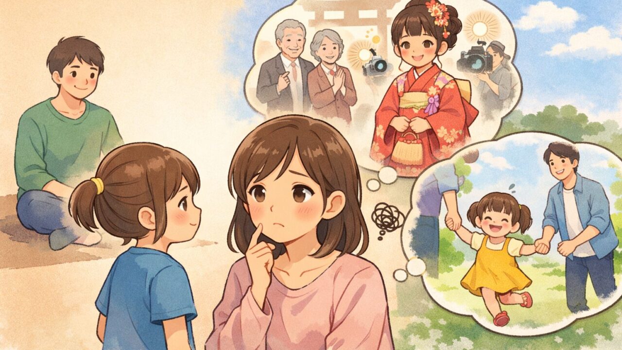 七五三で着物を着せない選択は、本当に“もったいない”ことなのでしょうか。この記事では、私自身の迷いや家族の会話を交えながら、着物を着せない場合の影響と、後悔しないための判断ポイントを整理していきます。